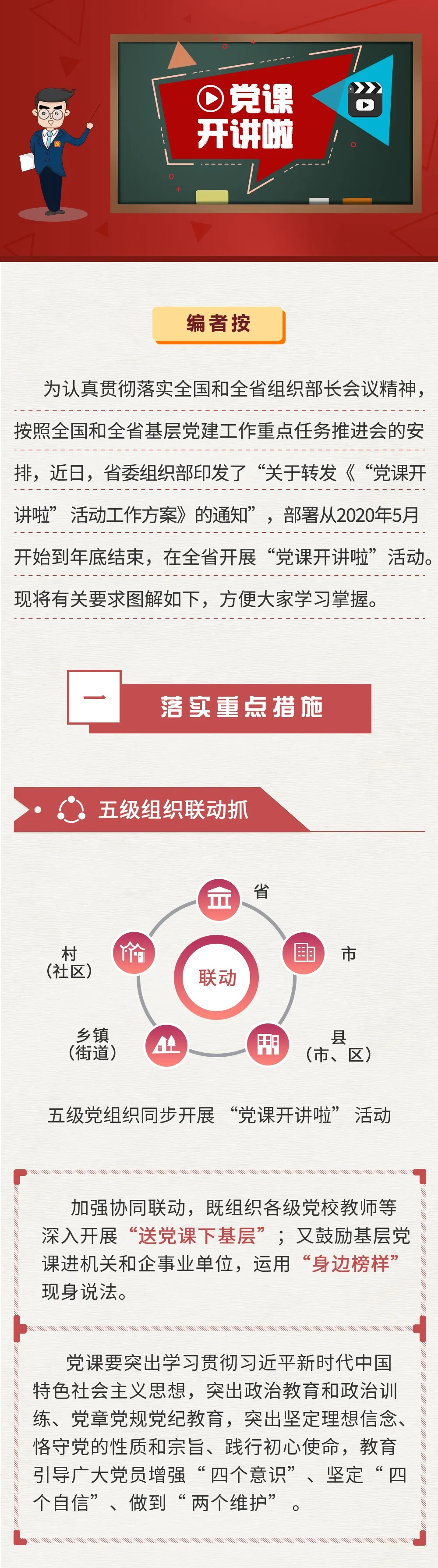 習近平強調,理論學習有收獲,重點是教育引導廣大黨員干部在原有學習的基礎上取得新進步,加深對新時代中國特色社會主義思想和黨中央大政方針的理解,學深悟透、融會貫通,增強貫徹落實的自覺性和堅定性,提高運用黨的創新理論指導實踐、推動工作的能力。思想政治受洗禮,重點是教育引導廣大黨員干部堅定對馬克思主義的信仰、對中國特色社會主義的信念,傳承紅色基因,增強“四個意識”、堅定“四個自信”、做到“兩個維護”,自覺在思想上政治上行動上同黨中央保持高度一致,始終忠誠于黨、忠誠于人民、忠誠于馬克思主義。干事創業敢擔當,重點是教育引導廣大黨員干部以強烈的政治責任感和歷史使命感,保持只爭朝夕、奮發有為的奮斗姿態和越是艱險越向前的斗爭精神,以釘釘子精神抓工作落實,努力創造經得起實踐、人民、歷史檢驗的實績。為民服務解難題,重點是教育引導廣大黨員干部堅守人民立場,樹立以人民為中心的發展理念,增進同人民群眾的感情,自覺同人民想在一起、干在一起,著力解決群眾的操心事、煩心事,以為民謀利、為民盡責的實際成效取信于民。清正廉潔作表率,重點是教育引導廣大黨員干部保持為民務實清廉的政治本色,自覺同特權思想和特權現象作斗爭,堅決預防和反對腐敗,清清白白為官、干干凈凈做事、老老實實做人。